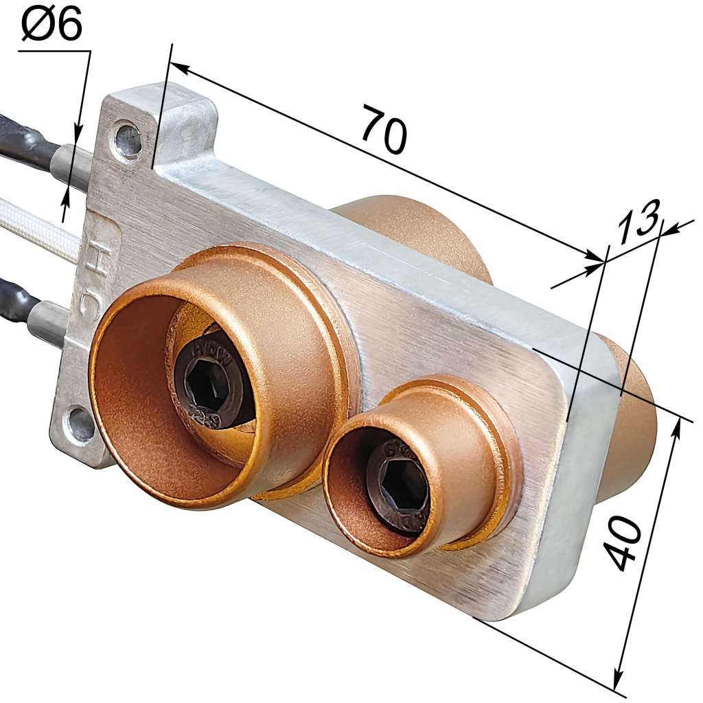- Насадки должны иметь максимально достижимую теплоемкость, чтобы минимально остывать во время нагрева трубы и фитинга. Увеличением толщины стенок алюминиевой насадки удается добиться ∆T=4°C. Латунь дала бы лучший результат, но это неоправданно дорого.